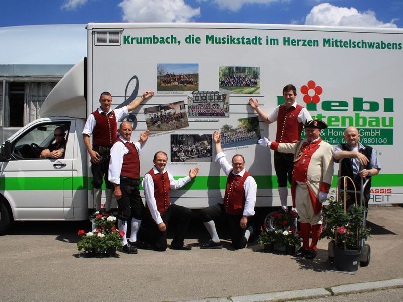 "Krumbach, die Musikstadt im Herzen Mittelschwabens" lautet der Slogan. Das Krumbacher Unternehmen Liebl Gartenbau fährt mit einem weiteren Transporter seines Fuhrparks Werbung für die heimische Blasmusik. Diesmal zieren die Fotos der sechs städtischen Musikkapellen und -vereine die "Werbefläche".